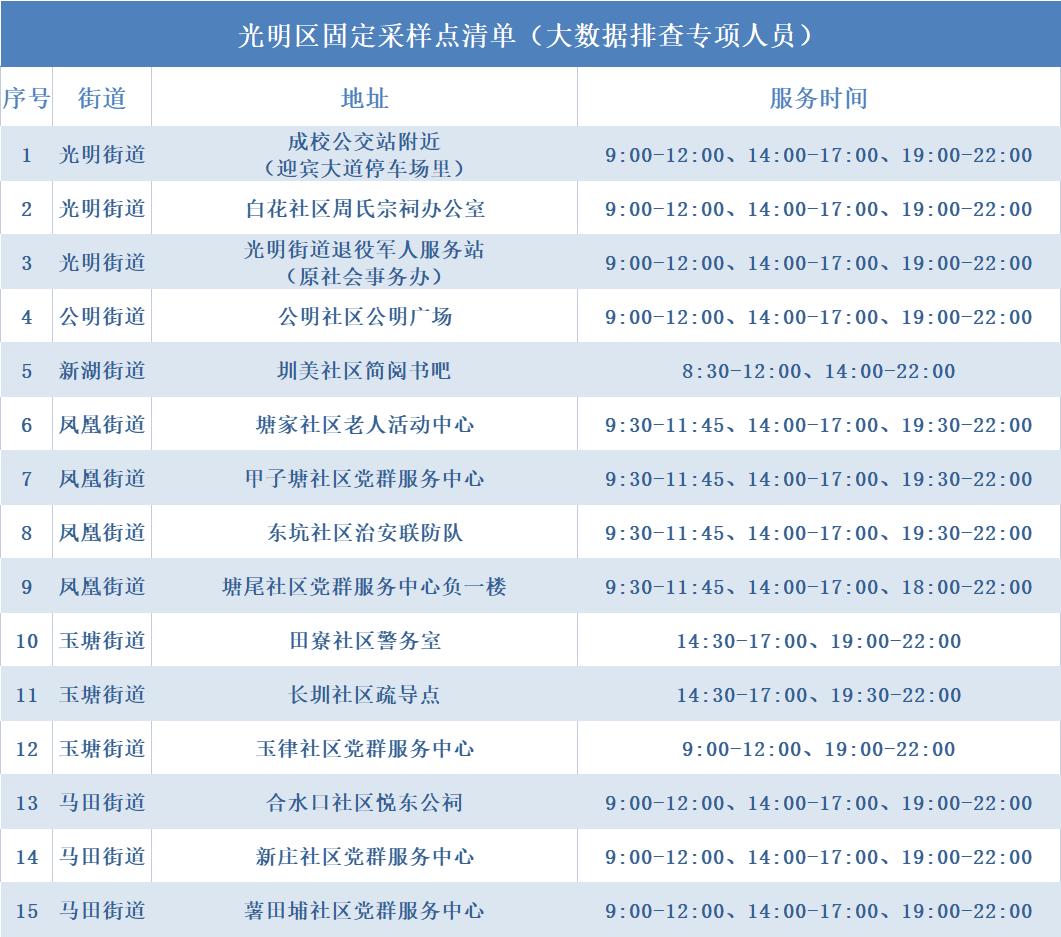 另,石岩街道执行特殊疫情防护政策,核酸点不在此次公布范围。