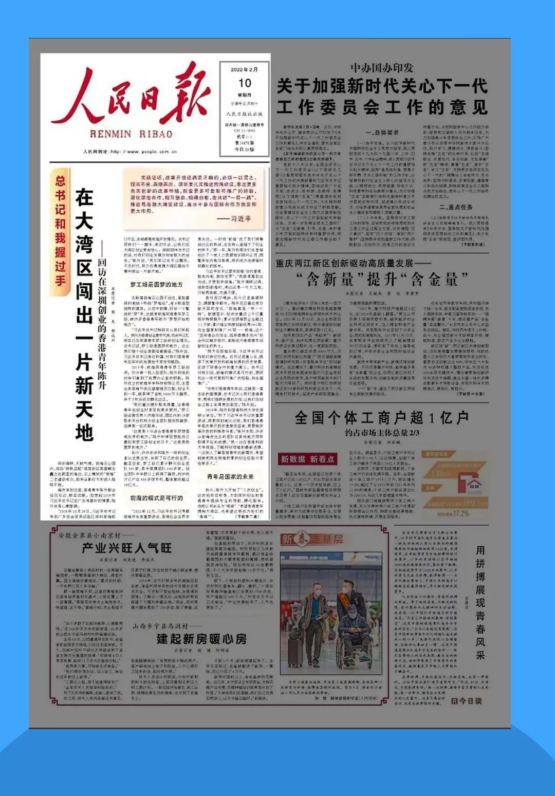 今天,《人民日报》在头版头条刊发文章