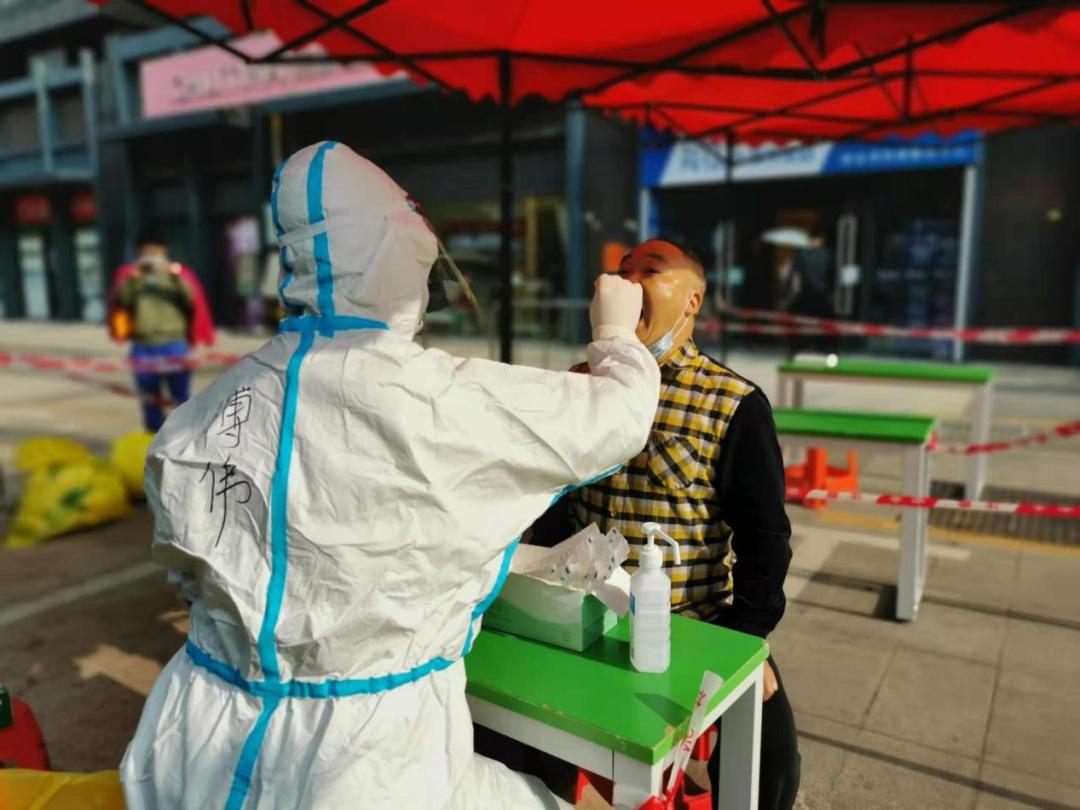 傅伟为居民采集核酸