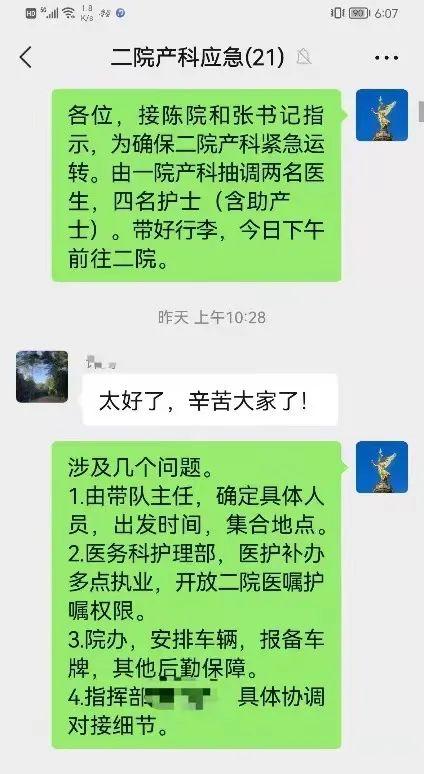 梁锦峰在工作群协调孕产妇生产事宜