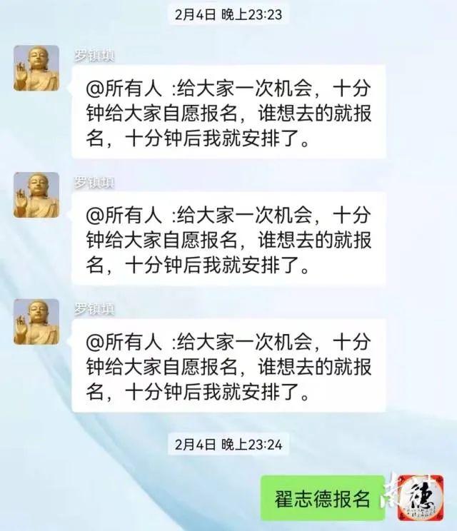 当晚11点,弟弟翟志德也在工作群收到了支援石岩的通知。没有多想,翟志德就第一个回复:翟志德报名!