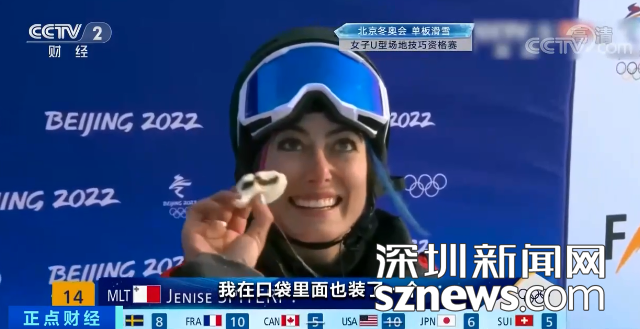 马耳他女子单板滑雪运动员珍妮丝·斯皮泰里:我最爱的食物就是中国菜,我每天吃六个豆包,9日早上我太紧张了都吃不下东西,就把豆包放到了背包里,我的口袋里也有一个豆包,在我做完第一轮动作之后,我想我终于可以吃上一口了。