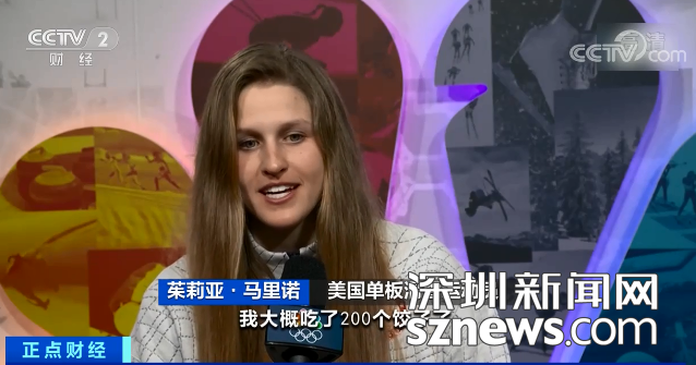 当地时间2月7日,刚刚斩获冬奥会单板滑雪女子坡面障碍技巧赛亚军的美国选手茱莉亚·马里诺,在接受美国全国广播公司采访时,谈到自己在奥运村最爱的美食——饺子,她说从到达奥运村以来,她大概已经吃了200个饺子了。