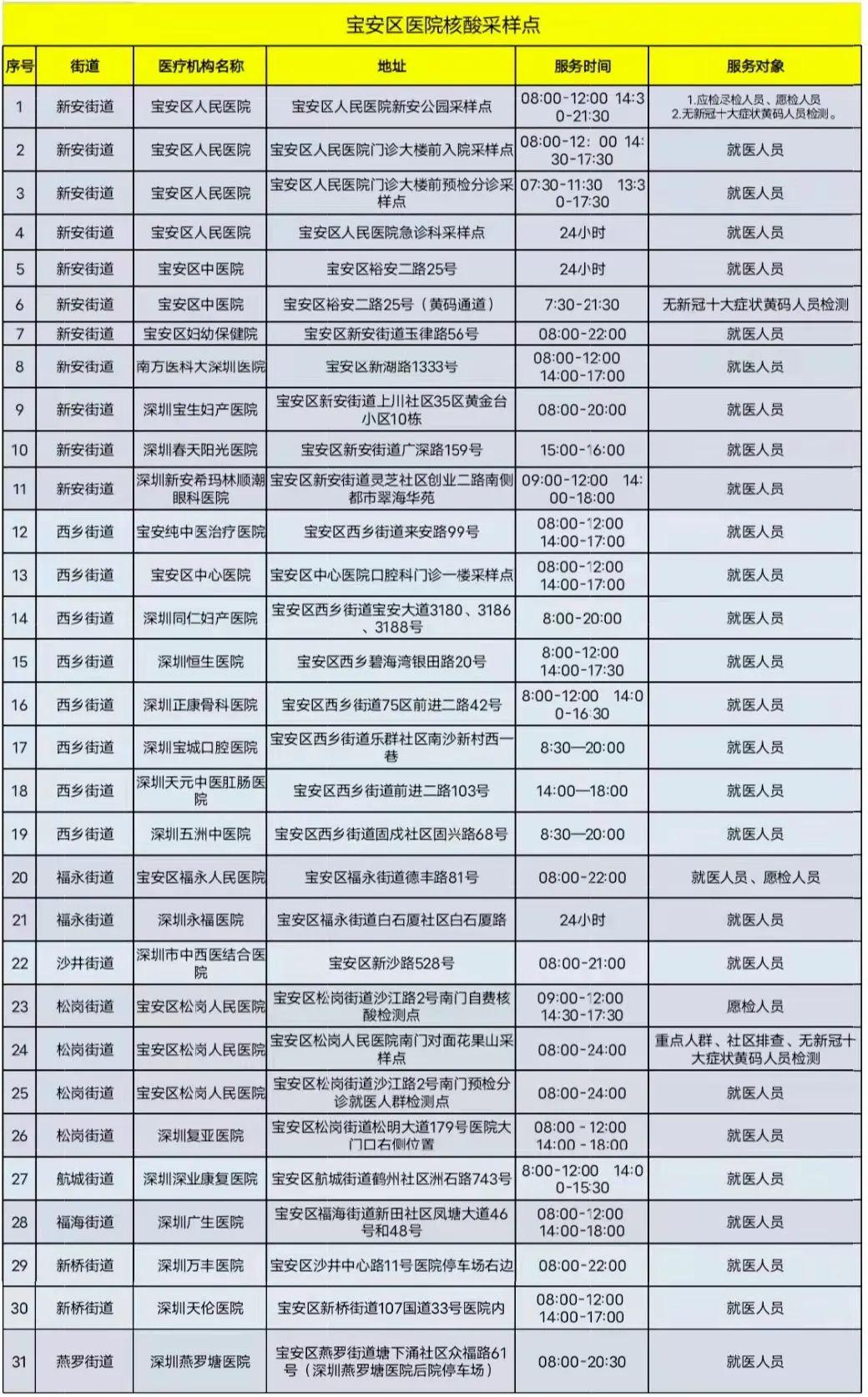 宝安区核酸检测采样点最新名单