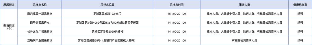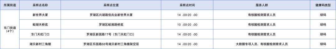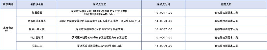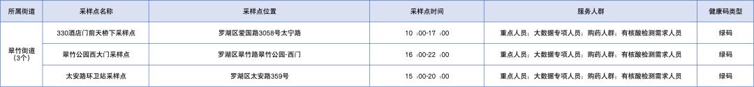 罗湖区设置了以下免费核酸采样点