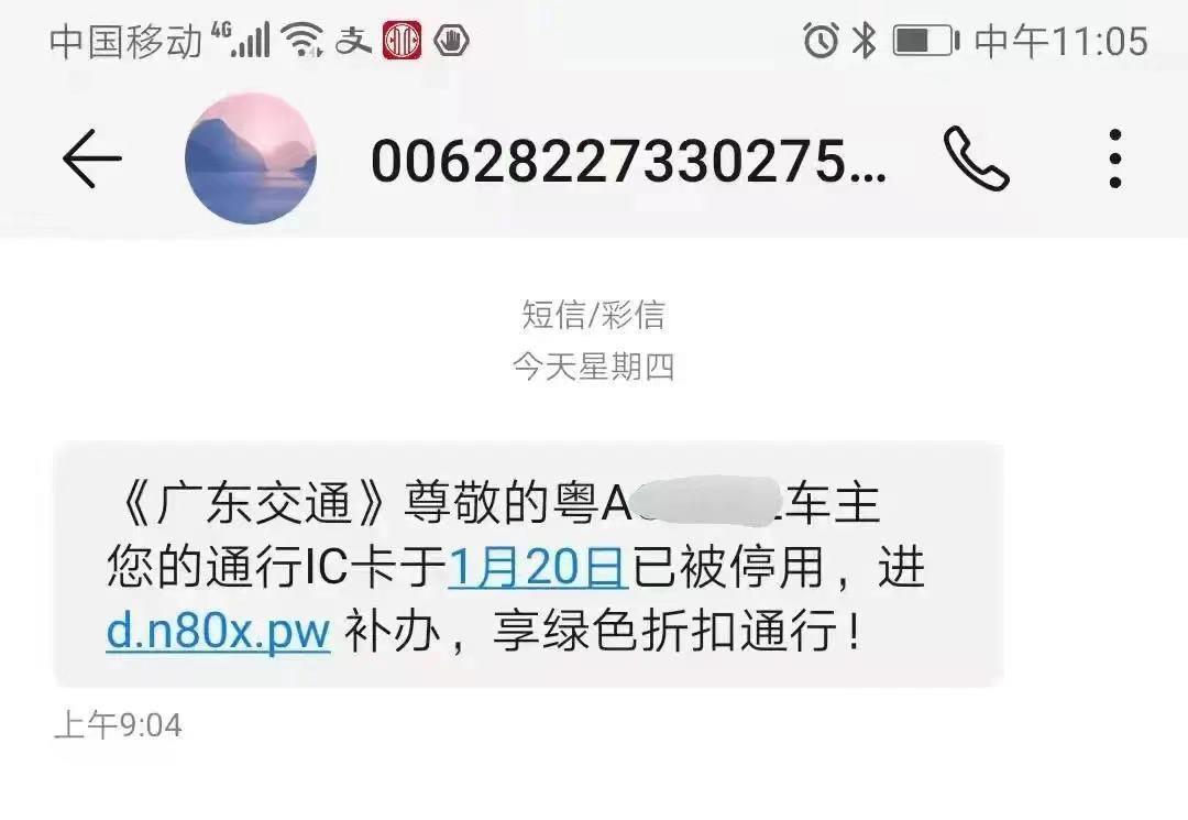 诈骗短信常常会冒充官方,如:【广东交通】、【深圳交通】、【广东交管】、【高速ETC】、【交管ETC】、【12123】等。当看到短信中有类似用词时,注意不要先入为主。