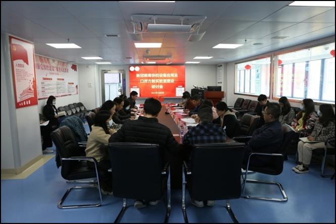 为进一步做好粤港跨境货车司机健康管理工作,提高入境口岸核酸标本检测效率,2月8日,由深圳市卫健委主办的“新冠病毒快检设备应用及口岸方舱实验室建设研讨会”在罗湖医院集团医学检验中心举办。深圳市卫生健康委医政处林敏副处长,深圳市疾病预防控制中心、深圳市临床检验质量控制中心负责人及深圳市人民医院、深圳市第二人民医院、深圳市第三人民医院、北京大学深圳医院、香港大学深圳医院、中山大学第八附属医院、深圳市罗湖医院集团等多个实验室负责人参与了此次会议。