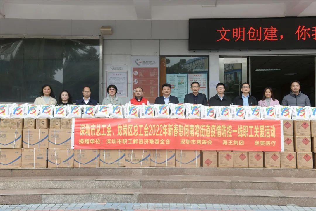 2月9日,深圳市总工会党组书记、常务副主席李映中,副主席冯艳玲 ,区人大常委会副主任、总工会主席人选李昆刚,常务副主席人选刁志娟等一行,在南湾街道党工委书记毛冬宝等陪同下到南岭村社区慰问疫情防控一线职工,并送去一批慰问物资。