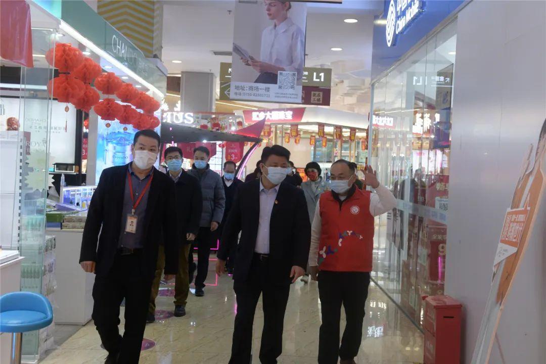 在人人乐商场及人人乐内的中影百汇影城,慰问组实地了解防疫措施落实情况,人员流动情况,提醒社区检测点及商场消费中心要做到保持应有的距离间隔,严格查验行程码、健康码等。
