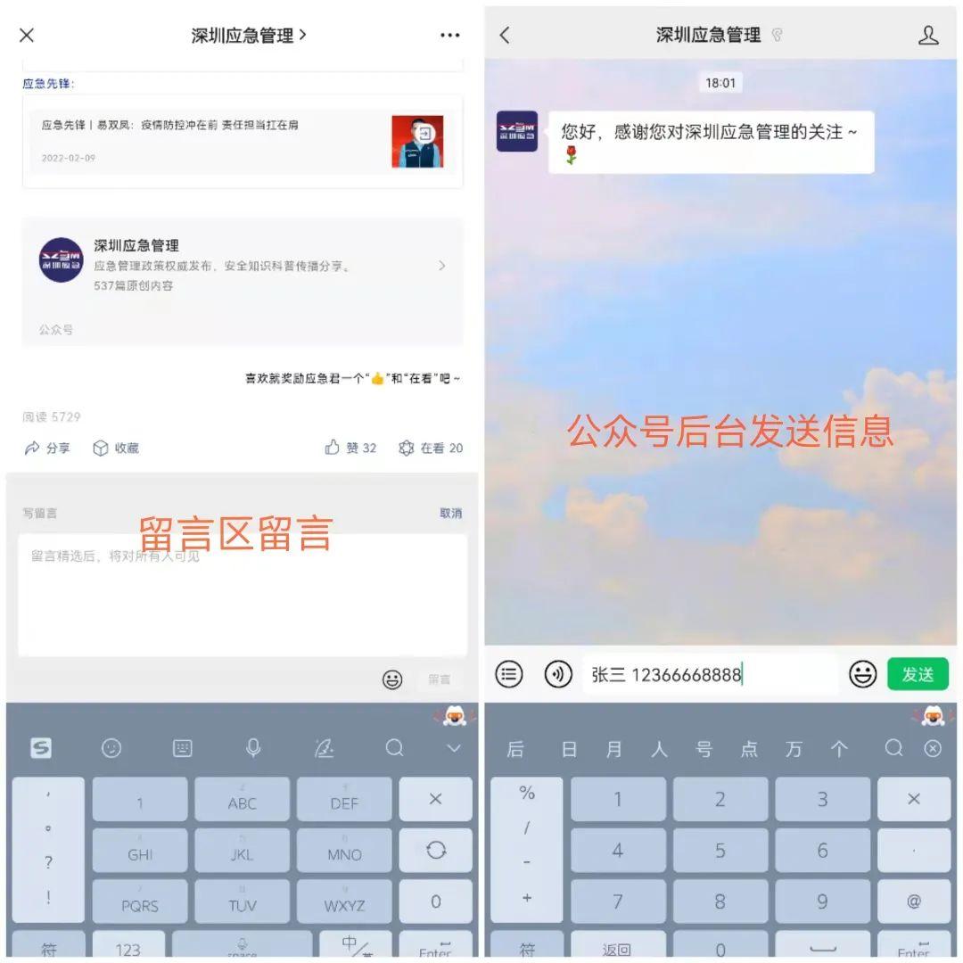 获奖者可通过本篇文章底部留言区写下“姓名+手机号”信息,也可通过向“深圳应急管理”公众号后台发送信息即可。