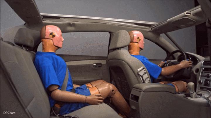 侧面撞击试验中,假人被车无情地抛出