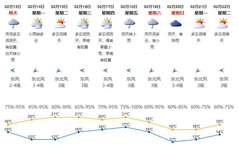 15-16日多云,早晚有轻雾,气温回升