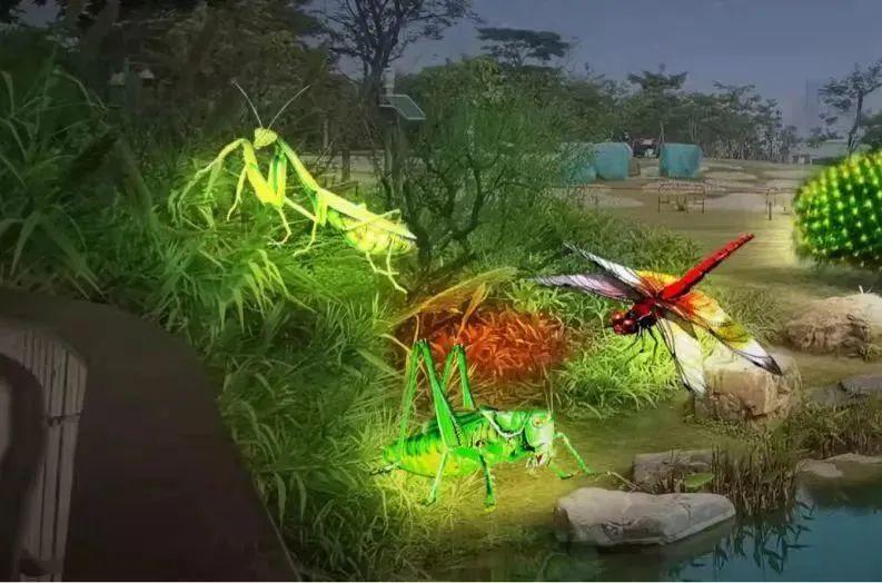 景区内有九处打卡地,分别为:入口门楼-“儿时伙伴”花灯组-2022新春花卉展-“天鹅”花灯组-“鹿鹿亨通”花灯组-“荷塘月色”花灯组-“蝴蝶”花灯组-非遗集市-元宵灯谜墙。