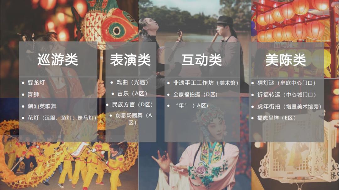 节日大道将举行“虎跃春来闹元宵”系列文化活动,通过耍龙灯、英歌舞、花灯、昆曲等一系列非物质文化遗产展示,更是为现场市民带来一场文化盛宴。详情见“幸福福田”公众号最新推送。