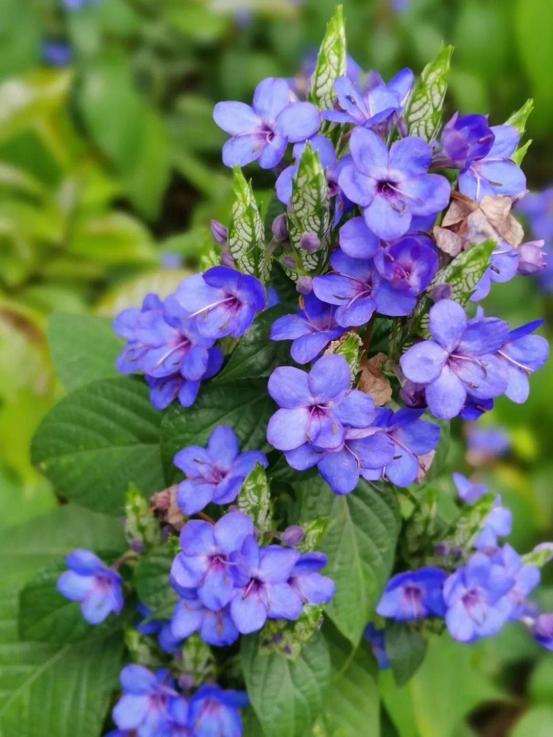 半灌木,花冠通常蓝色,盛花期开花的密度大,远望一片湛蓝。耐半荫,喜高温湿润气候。繁殖常用扦插法,极易成活。