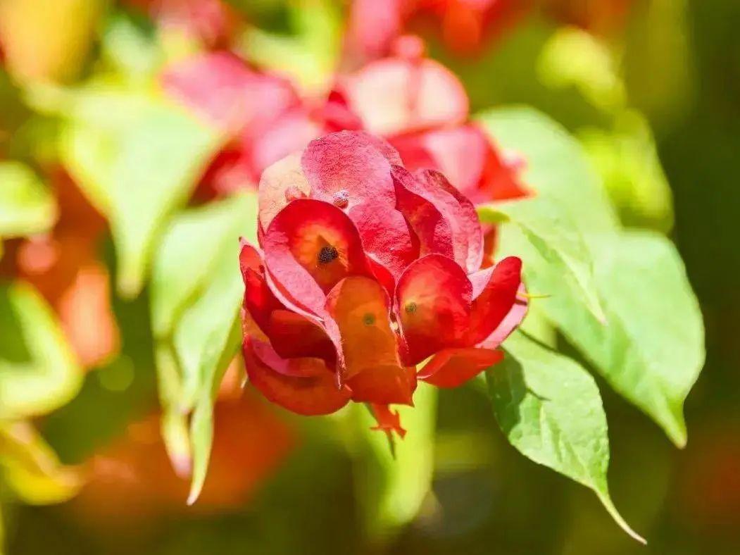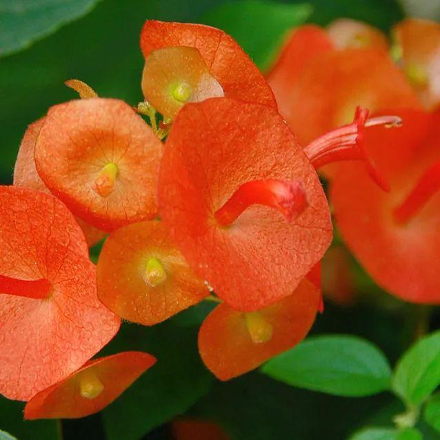 常绿灌木。花萼扩展,砖红色或橙红色,花冠管状,橙红色,自花萼中央伸出。因花萼扩展形似帽檐,故又名“帽子花”。