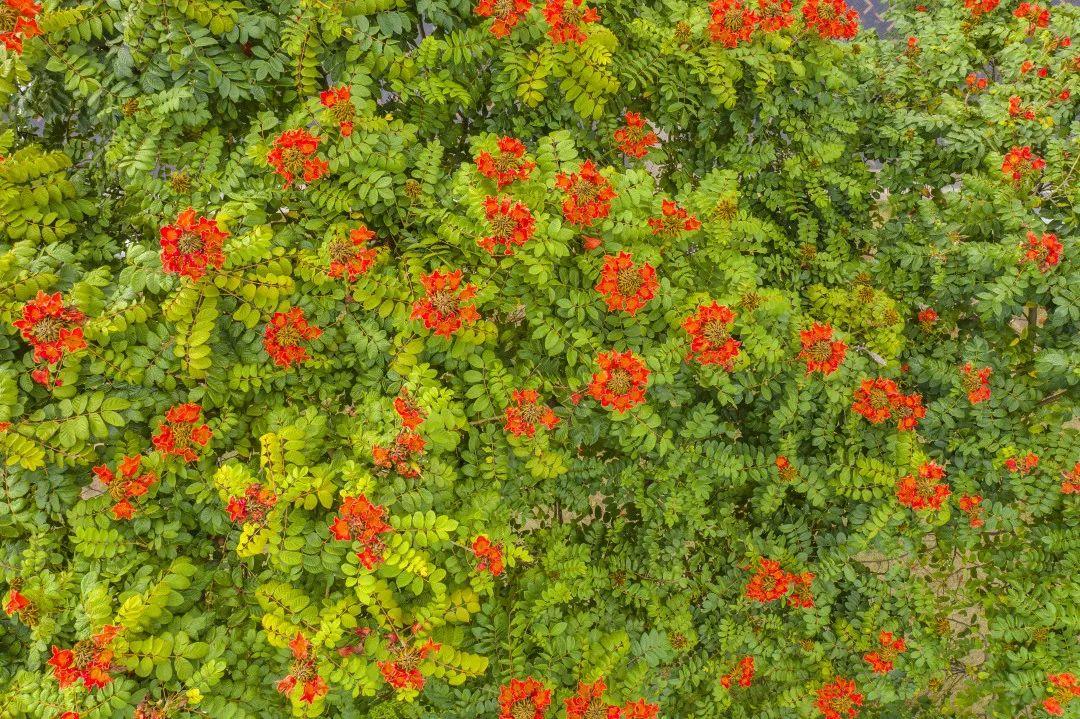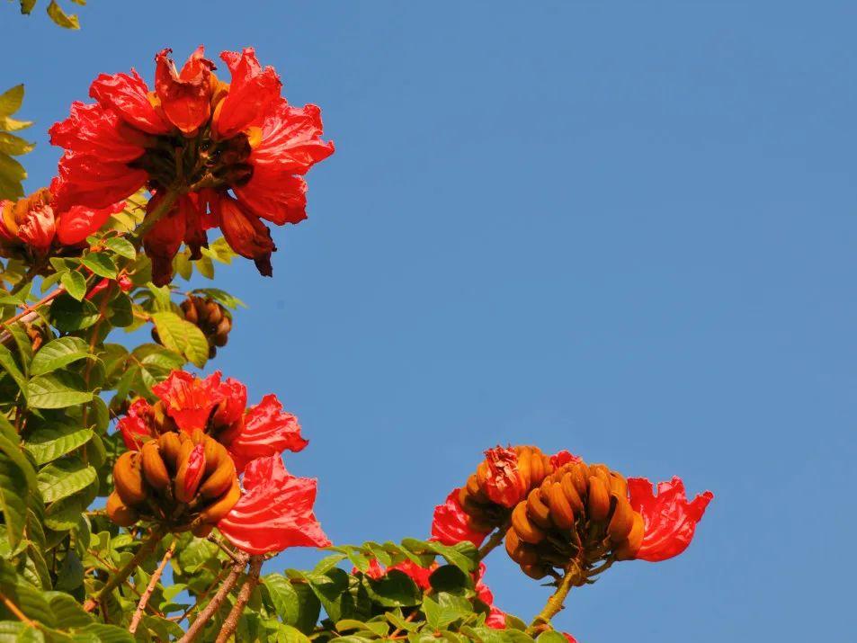 常绿乔木。花大,花萼佛焰苞状,花冠橙红色,开花时,花朵自外围向中心逐渐开放。