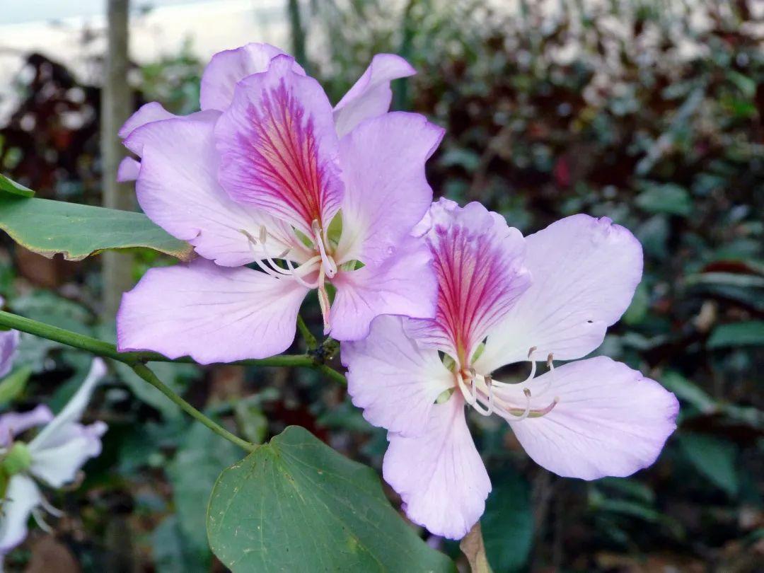 半落叶乔木。叶革质,顶端2裂。总状花序顶生或腋生,花冠紫红色。通常不结果。该品种1965年被定为香港的市花,1997年7月1日香港回归祖国,该花的图案又被定为香港特别行政区区徽。