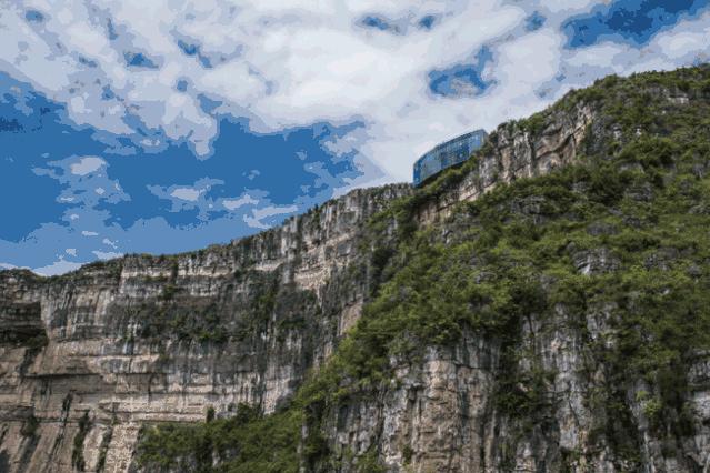 在贵州省黔西南州的安龙县,165米大岩壁的垂直悬崖边,静静“悬浮”着一座神秘的美术馆。而这里,就是安龙国家山地户外运动示范公园溶岩美术馆。