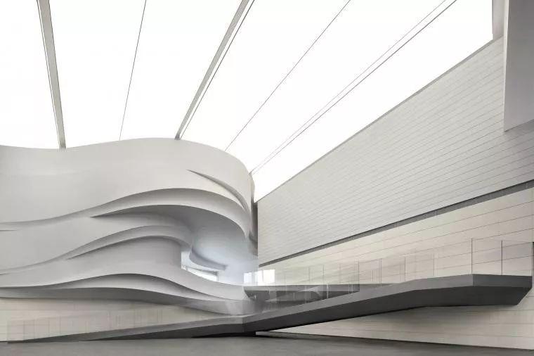 馆内张迪应用了有张力的曲线,使空间充满流动的感觉。建筑师期待,在游览过程中,人们会随着空间的不同处理而感受到光影的变化,从而产生精神上多层次的愉悦观感。