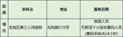 横岗街道核酸检测哨点