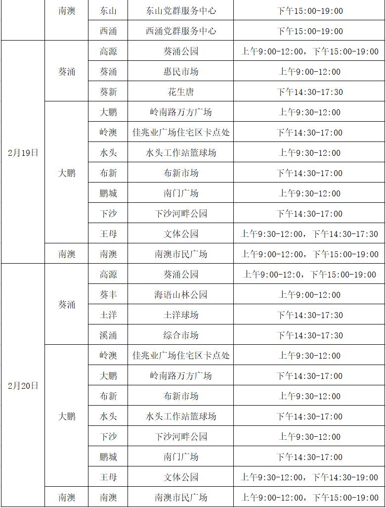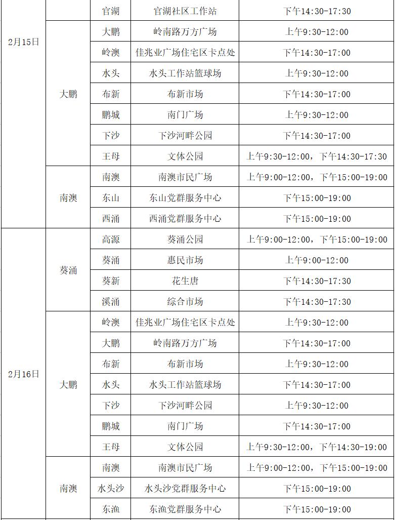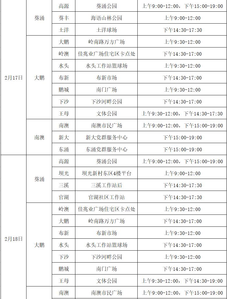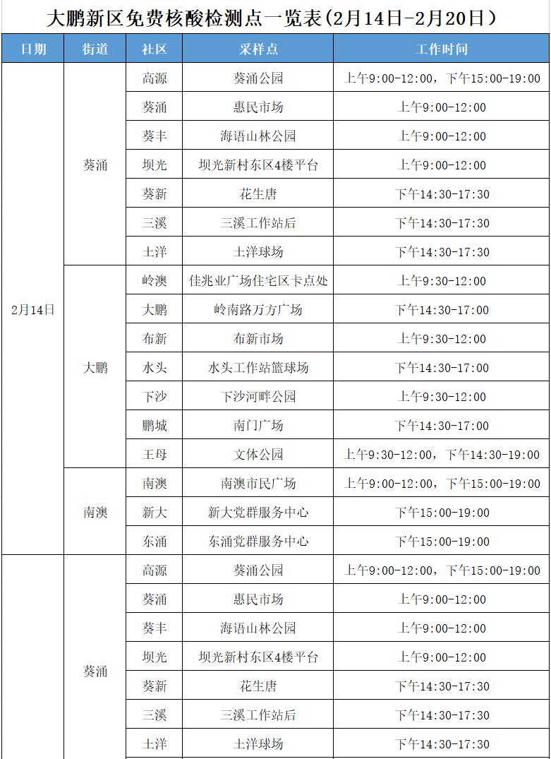 2月14日-20日大鹏新区免费核酸检测点信息,速分享→