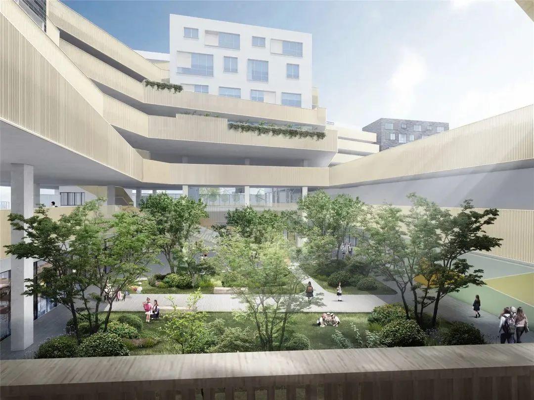 ◆在空间方面,学校将在校园中央处打造一个宽敞的庭院,中空的庭院起到枢纽中心的作用,为周围的空间带来良好的通风和采光,也为师生们带来休息、交流和娱乐的开放空间。