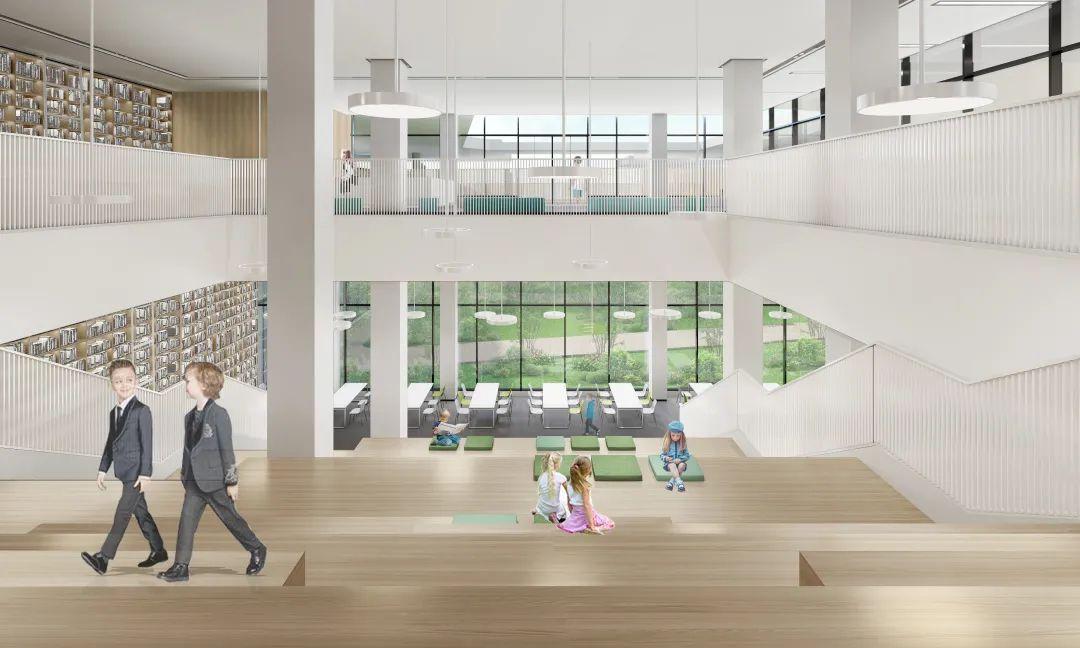 学校将通过合理布局实现空间利用最大化,打造一个涵盖阅读、艺术、体能、学习、生活体验、实践创新、情绪行为中心等为一体的融合教育场所,让“包罗万象”的课程框架设计成为现实。目前,学校的建筑规划图已新鲜出炉,青春活力+高效空间+新颖设计,让人期待万分!