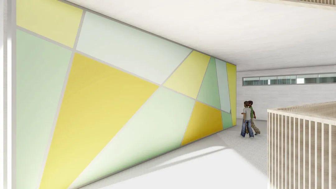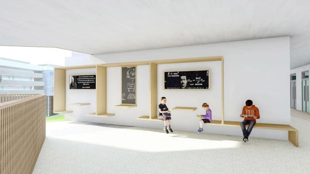 ◆在布局方面,学校整体呈现北欧现代风格,局部墙壁绘制色彩鲜明的颜色、设计整齐有序的窗户格局,同时设置阅读角、艺术角、棋艺角等课间休憩角落,为学生课间十分钟增加趣味和交流空间,打造严肃兼具活泼的教育建筑感观。