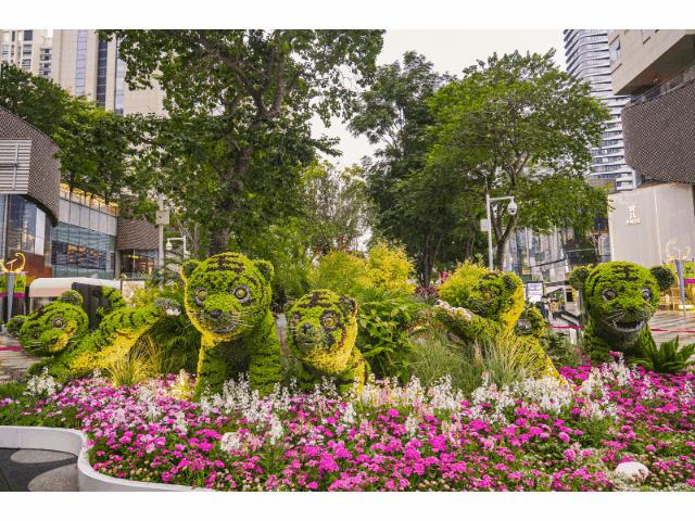 节日大道上布置了各处精美的花境