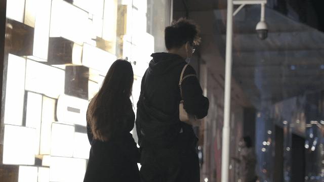 与爱人牵手漫步在夜色里