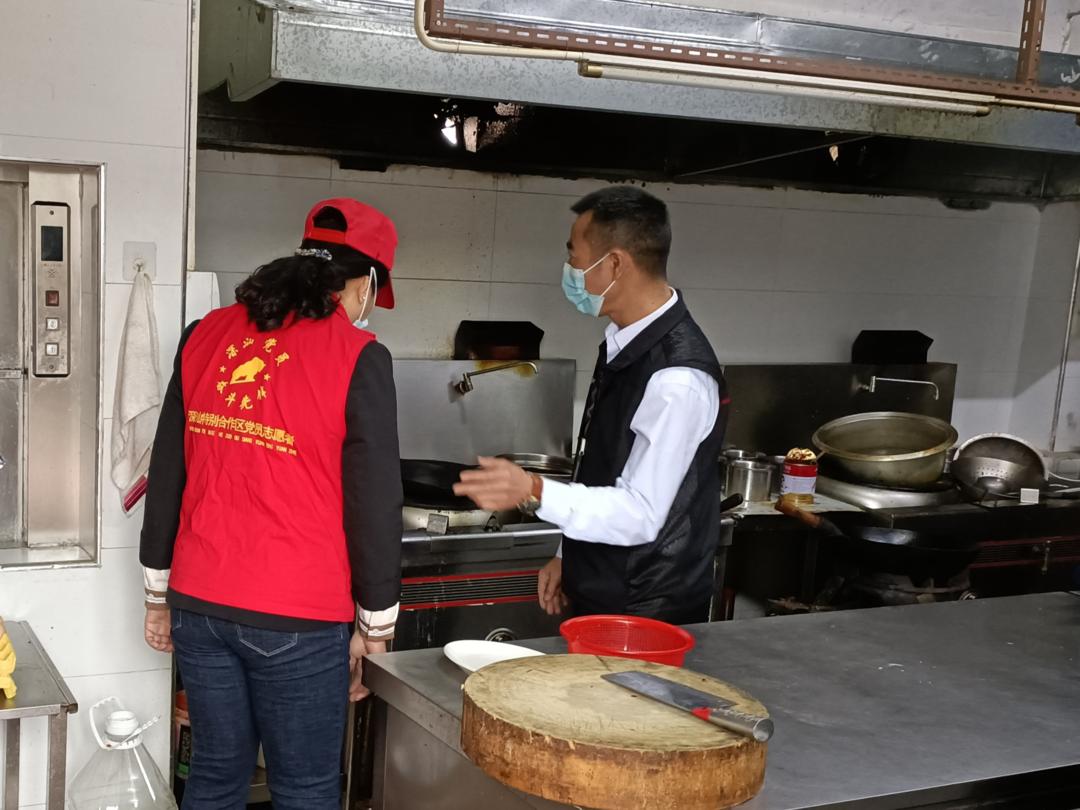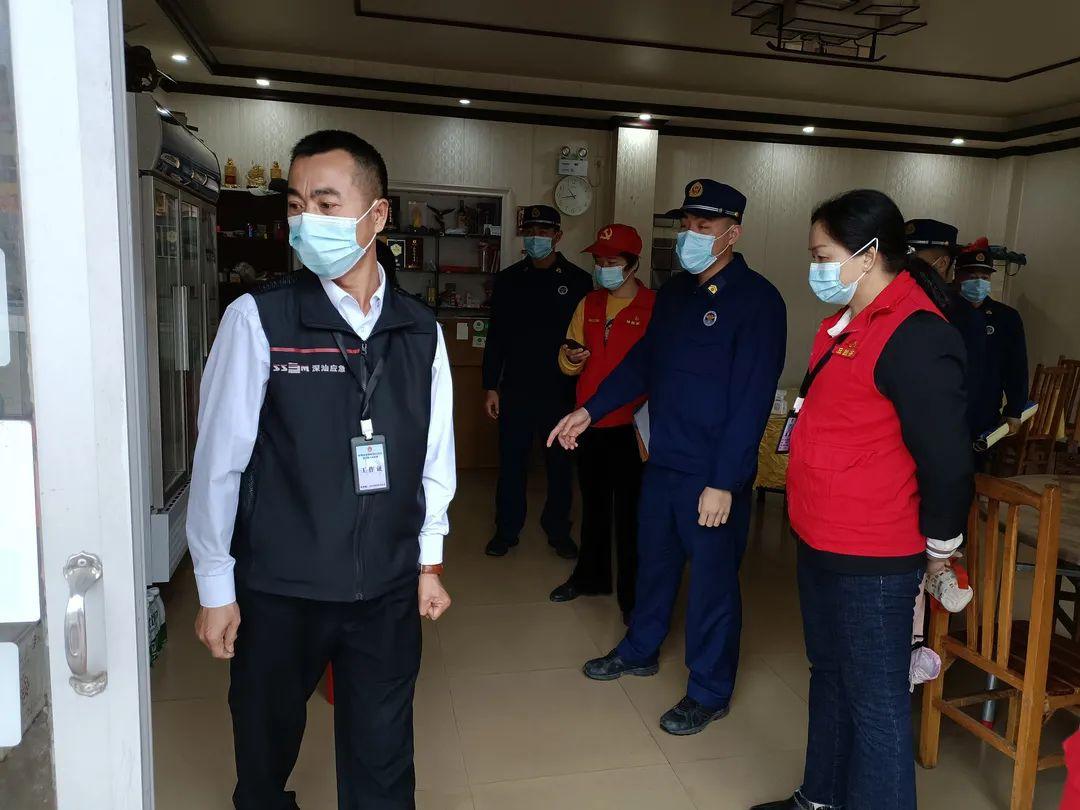 ▲赤石镇消防工作队和园林社区干部在进行餐馆安全检查