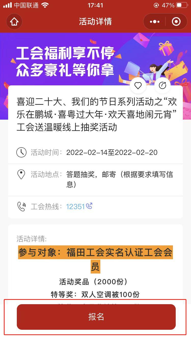 ③点击活动页面最下方按钮进行报名(还未进行实名认证的职工需先进行实名认证)