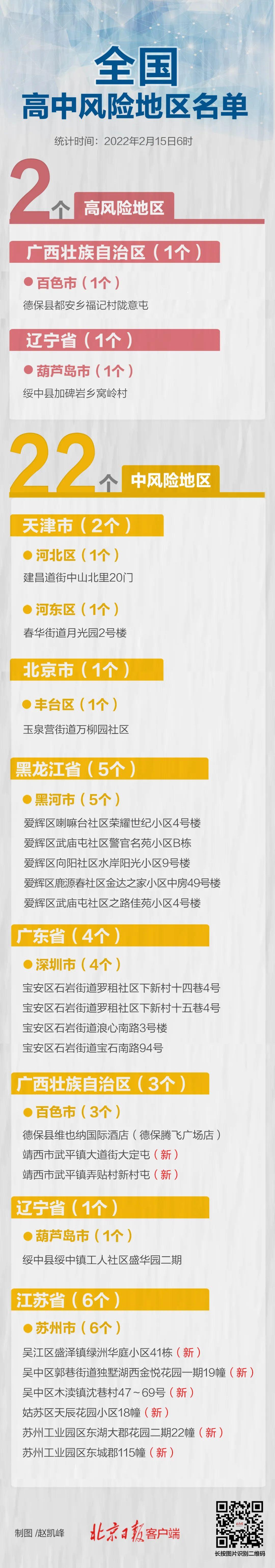 14日23时起,苏州市吴江区盛泽镇绿洲华庭小区41栋、吴中区郭巷街道独墅湖西金悦花园一期19幢、吴中区木渎镇沈巷村47~69号、姑苏区天辰花园小区18幢、苏州工业园区东湖大郡花园二期22幢、苏州工业园区东城郡115幢等6地调整为中风险地区。