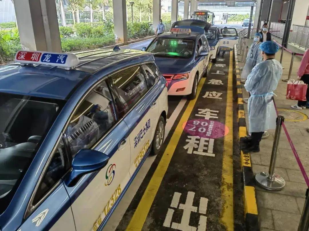 为应对客流高峰期,旅客等候出租车排队时间长问题,深圳机场将在出租车上客通道排队人数较多时,启用出租车上客应急通道。