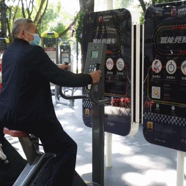 这套智能器材包括智能五方位体测亭、自发电立体式健身车、智能竞赛车等设备,覆盖市民日常涉及的力量训练、有氧、体能辅助等各环节。