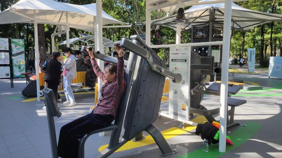 智能器材健身区域也是公园里的一大特色,赖女士是蛇口的老居民,以前经常在招北大草坪散步休闲,如今,公园里多了智能健身器材,她感觉锻炼更加方便了。