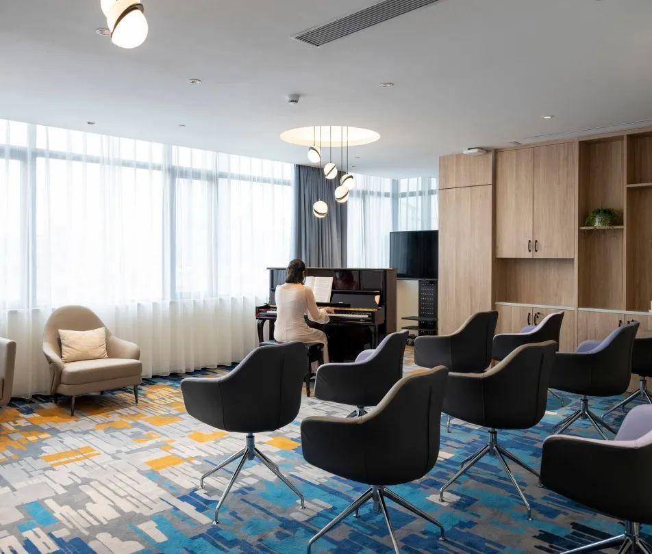 在升级的华强北街道综合文化服务中心中,面积296.75平方米的多功能厅设有116个座席,其参照黑匣子式剧场建设标准,以灵活、舒适为设计理念,打造了一个实用且灵活多变的多功能厅,剧场内的灯光、音响等音控设备均按照国内一流标准配置,能够适应不同类型戏剧作品、歌舞表演的舞台及规模要求。
