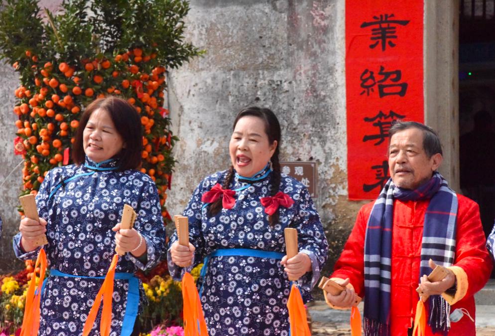 《龙岗皆歌》,是用客家方言演唱的民间歌曲,它的曲调简朴,易学易懂,易于传唱。《龙岗皆歌》传承人-巫云瑞老师带队到馆表演,曲调轻快简洁,饱含庆祝喜悦之情。