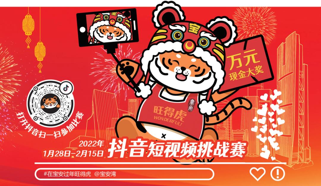 1月28日,活动正式启动,广大市民网友热情澎湃,纷纷拍摄视频参与活动,截至2月15日凌晨零点,“在宝安过年旺得虎”抖音话题总热度达到8655.8万,共征集作品近7000件。