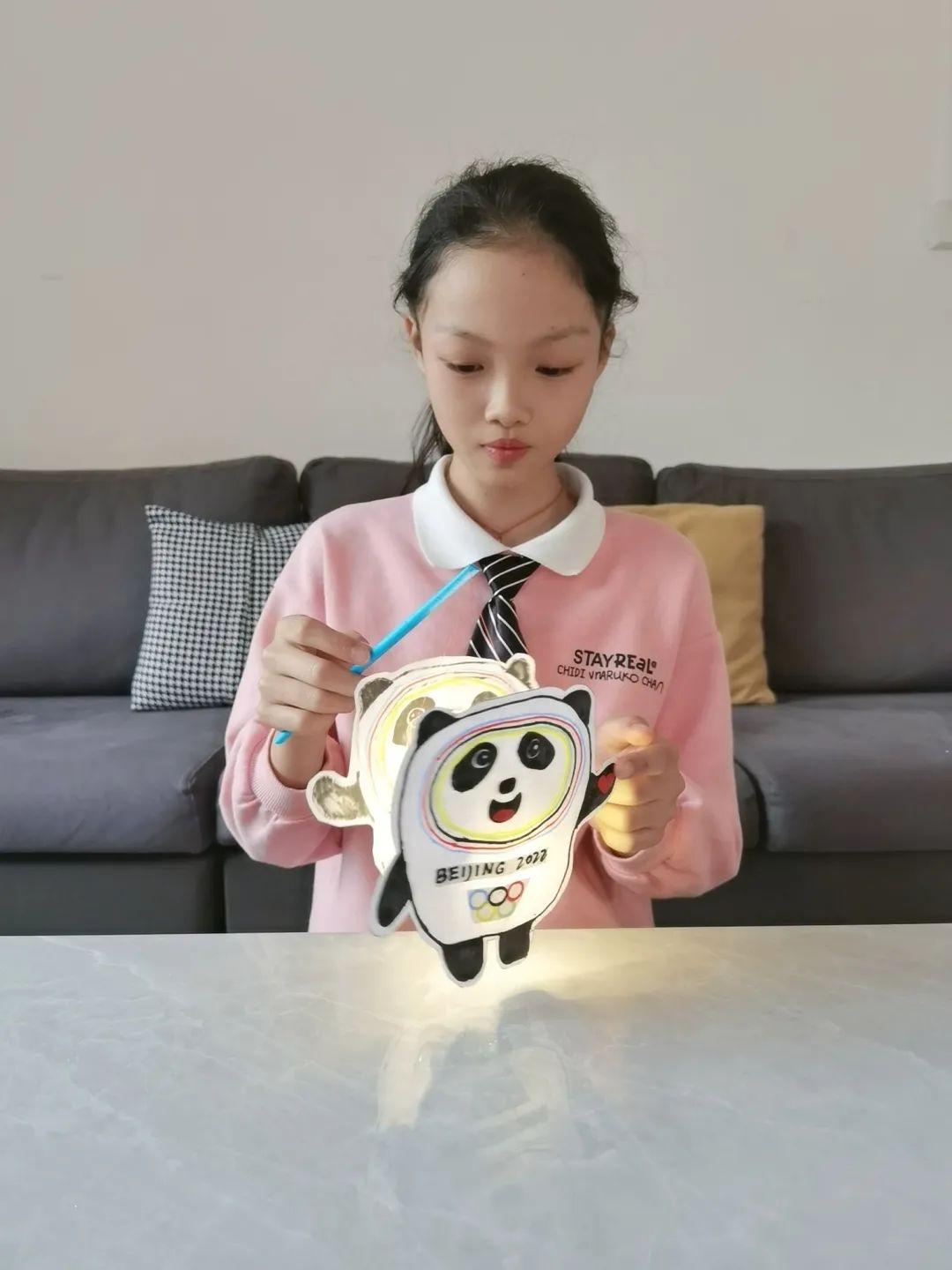 “2022年北京冬奥会,冰墩墩成为了全民热捧的‘冬奥小明星’,而我也不例外,喜欢上了这个象征坚韧不拔的意志和鼓舞人心的奥林匹克精神的吉祥物。冬奥期间恰逢我国的元宵节,借此机会,我手工制作了冰墩墩元宵花灯,祝我们冬奥健将们赛出风格、赛出水平,也希望我们能早日战胜疫情,祝愿全国人民阖家欢乐!”