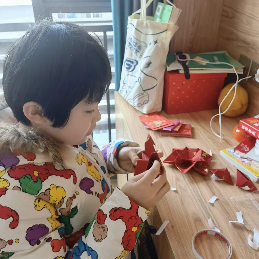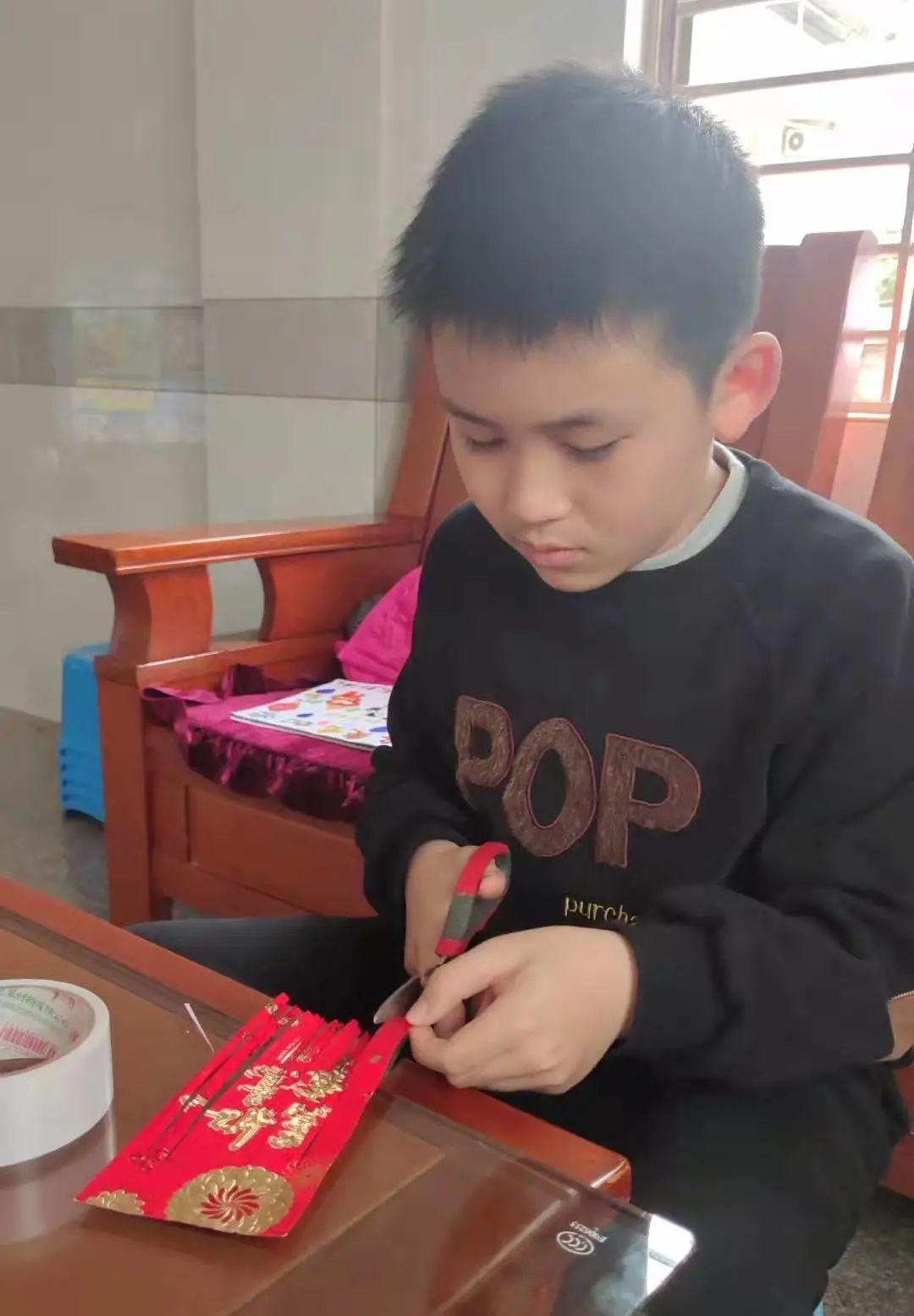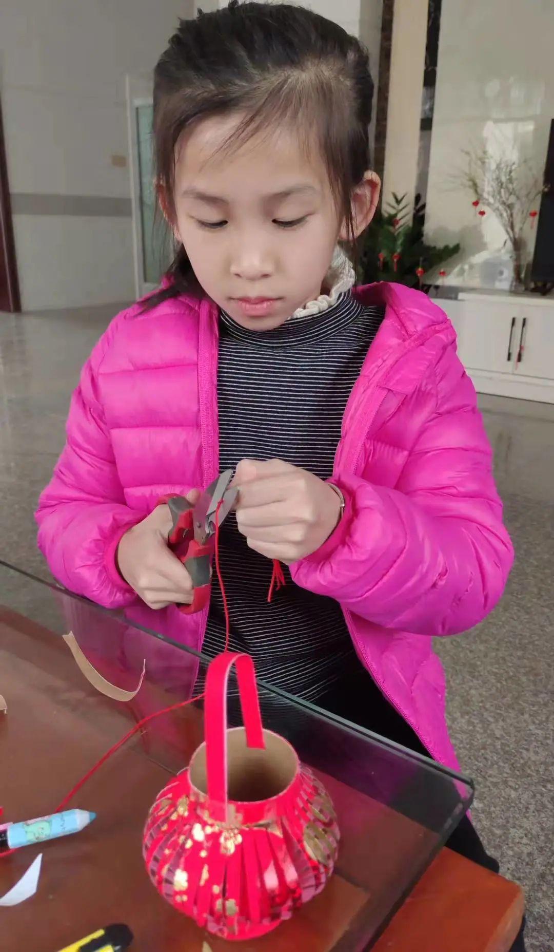 “我将家里没用的红包做了一个手工小灯笼,以前还需要妈妈帮忙,今天全部自己独立完成,好开心呀!祝大家月圆人圆事事圆满,花好灯好好事连连,2022元宵节快乐!”