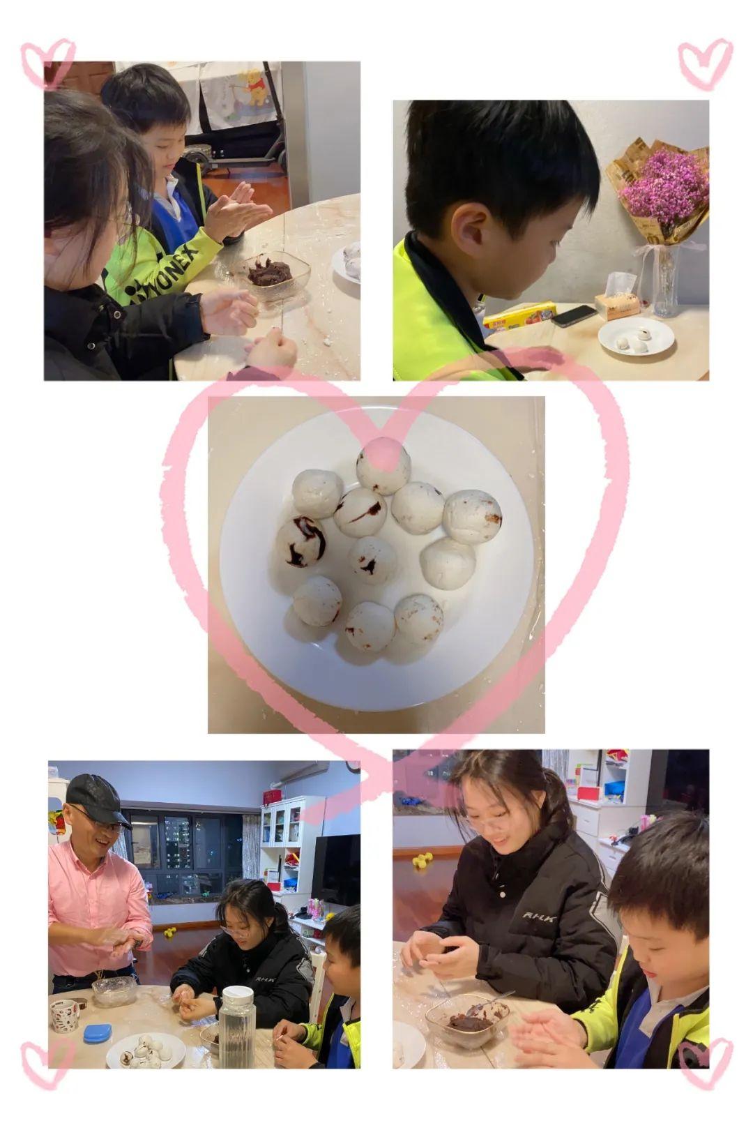 “我和妈妈一起和面、包汤圆,我俩都是第一次做汤圆,有些汤圆还漏馅了,看着形状、大小不一的汤圆,我还是特别开心。我明白了自己参与劳动的意义,过程最宝贵!”