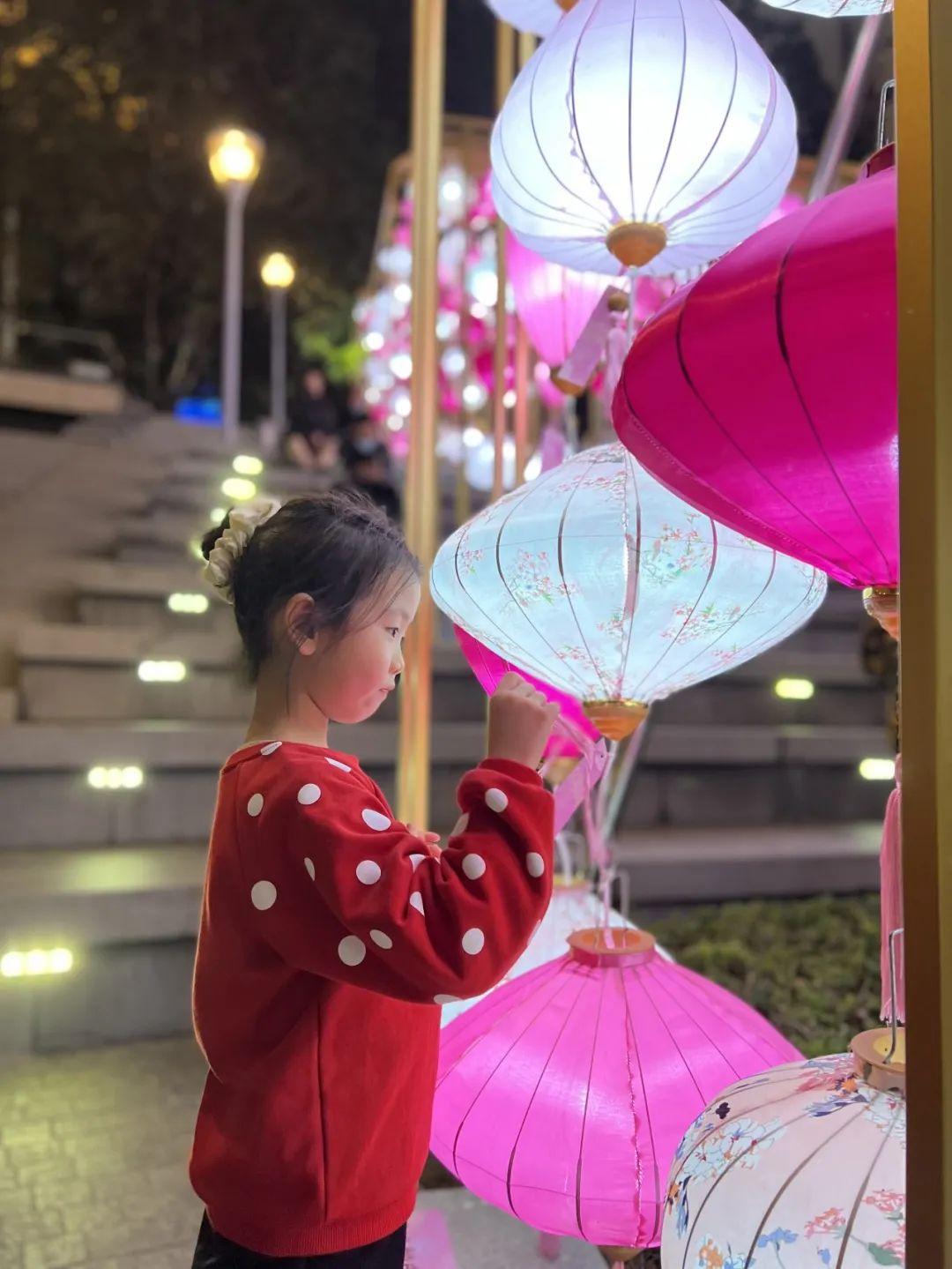 “元宵佳节,爸爸妈妈带着我和妹妹到万象城看灯笼,猜灯谜。五光十色的灯笼,真像那首宋词《青玉案元夕》里面写的那样,宛如‘东风夜放花千树。更吹落、星如雨’,璀璨耀眼,衬托出元宵的节日气氛。”