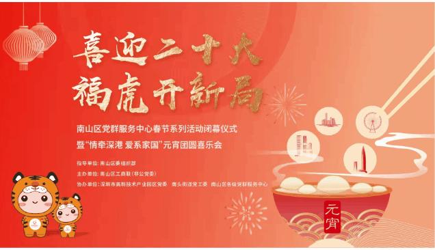 雄狮高跷闹十五,窗辉映着团圆影。2月15日下午,由南山区委组织部指导,南山区工商联(非公党委)主办,深圳市高新技术产业园区党委、南头街道党工委、区各级党群服务中心协办的南山区“喜迎二十大 福虎开新局”党群服务中心春节系列活动闭幕式暨“情牵深港 爱系家国”元宵团圆喜乐会活动,在南头古城顺利举行。南山区委常委、组织部部长王小蓉,区委常委、纪委书记莫士龙,以及南山区委组织部、区工商联(非公党委)、高新区党委、南头街道党工委等相关单位负责同志出席活动。