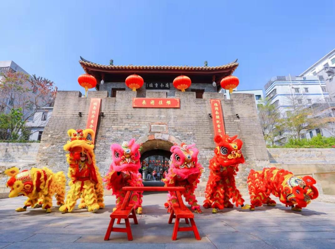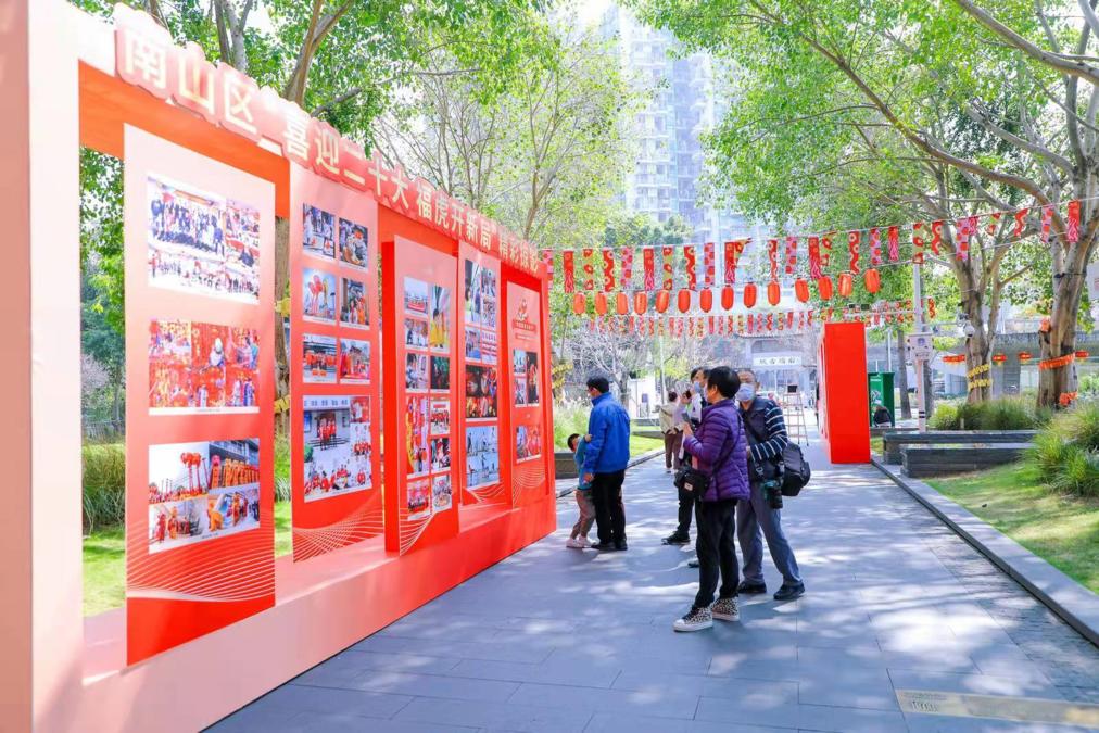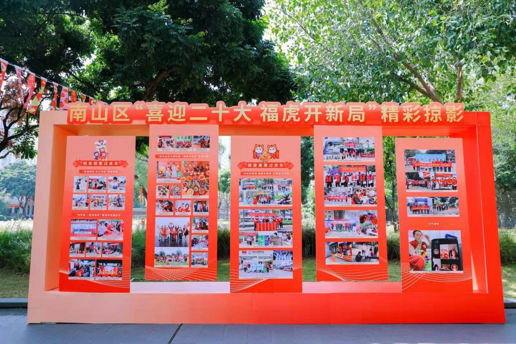 金狮送春,虎跃龙腾。在南头古城南城门,极具岭南特色的醒狮表演开启了虎年大“集”,采青、送对联等表演,为参加活动的嘉宾、深港青年及在场的市民朋友开鸿运、送祝福,赢得一片喝彩。城门两边的路上集中展示着春节期间,从全区各党群服务中心评选出的“喜迎二十大 向党表初心”“有爱就是团圆”优秀绘画、摄影作品及各项精彩活动集锦。据了解,为了让广大留深群众度过一个喜庆祥和的虎年,以高昂的热情迎接党的二十大召开,南山区委组织部以“喜迎二十大 福虎开新局”为主题,通过“线上+线下”的形式,共举办活动291项、1000余场次,服务群众上万人次,为广大居民及企业员工送上新春大礼包,让留深者红红火火、暖暖心心、相亲相爱、欢欢喜喜、健健康康过大年!