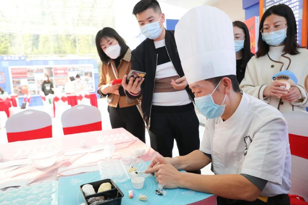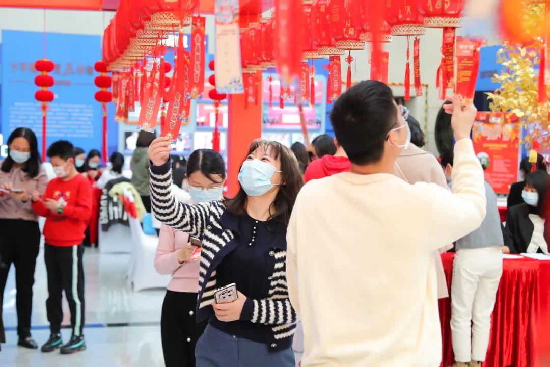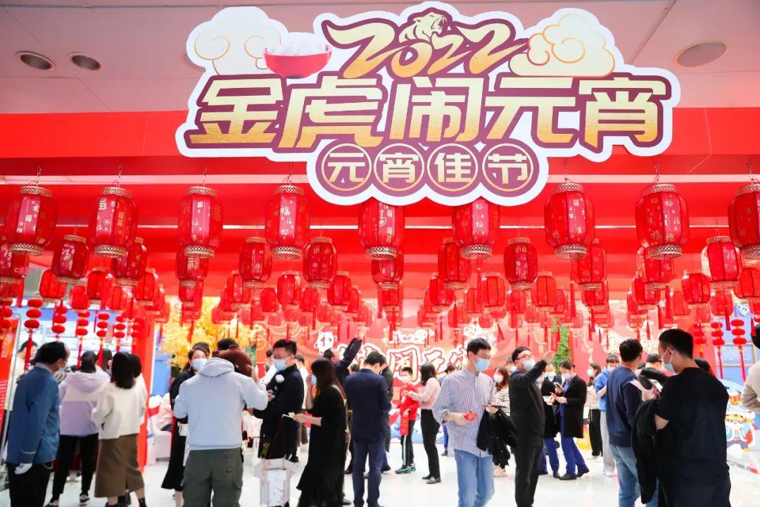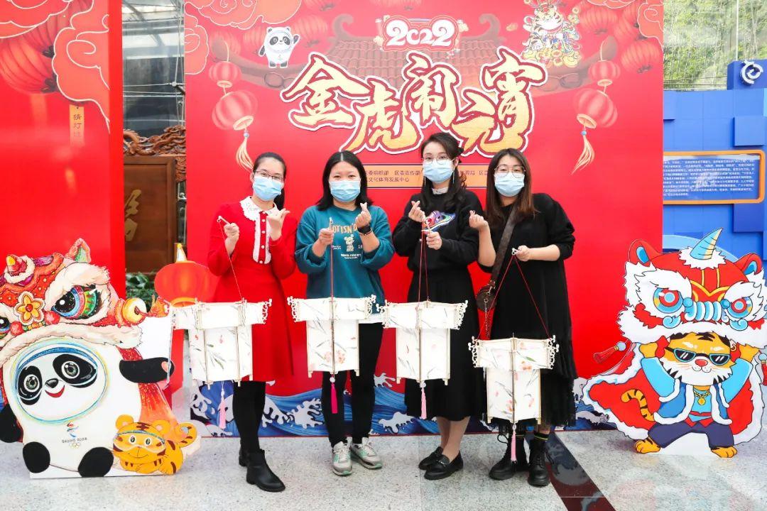 走进活动现场,一排排火红的灯笼映入眼帘,冰墩墩剪纸、非遗灯笼、特色汤圆、猜灯谜……各色活动热闹展开。