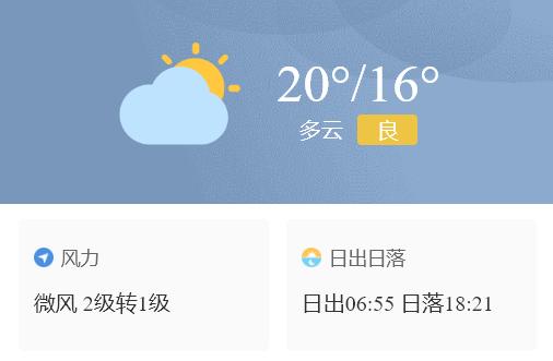 16日多云,可见阳光,气温16-20℃。