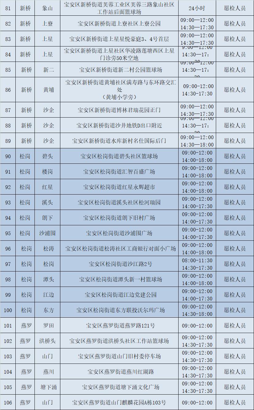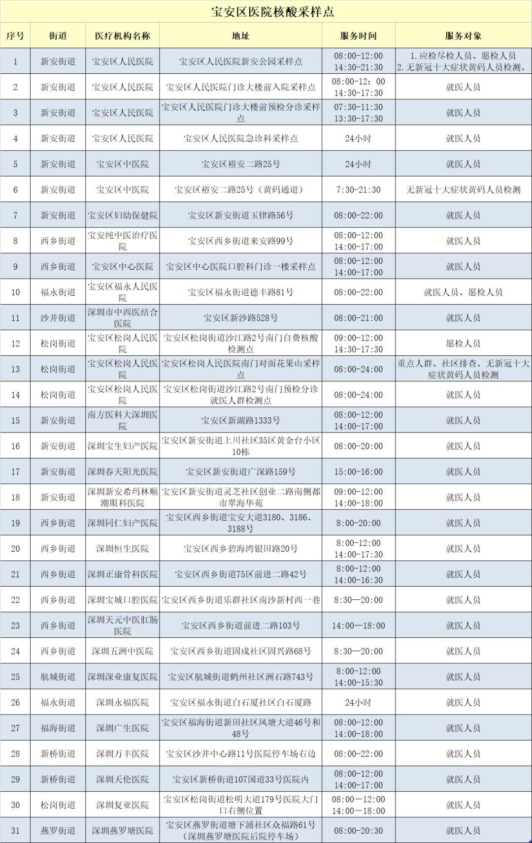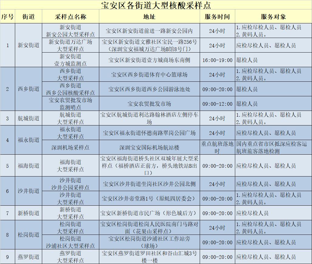 另,石岩街道执行特殊疫情防护政策,核酸点不在此次公布范围。