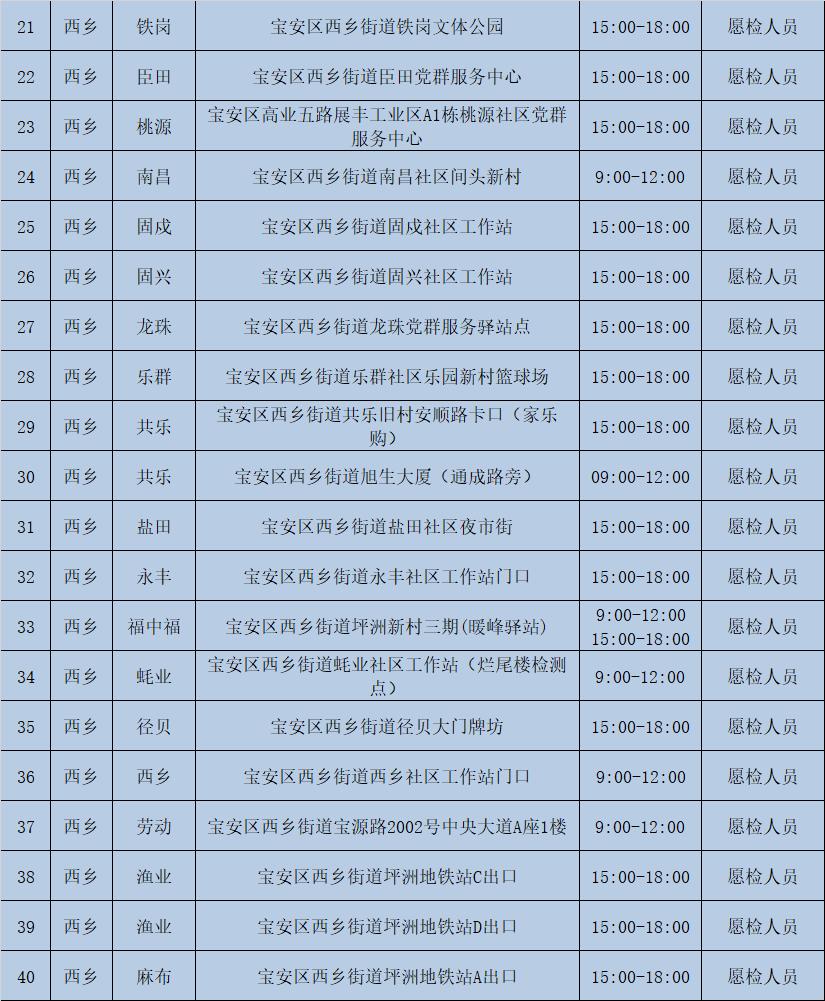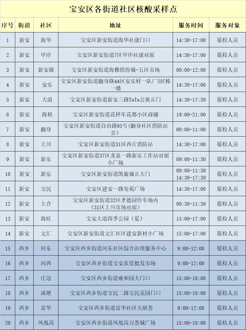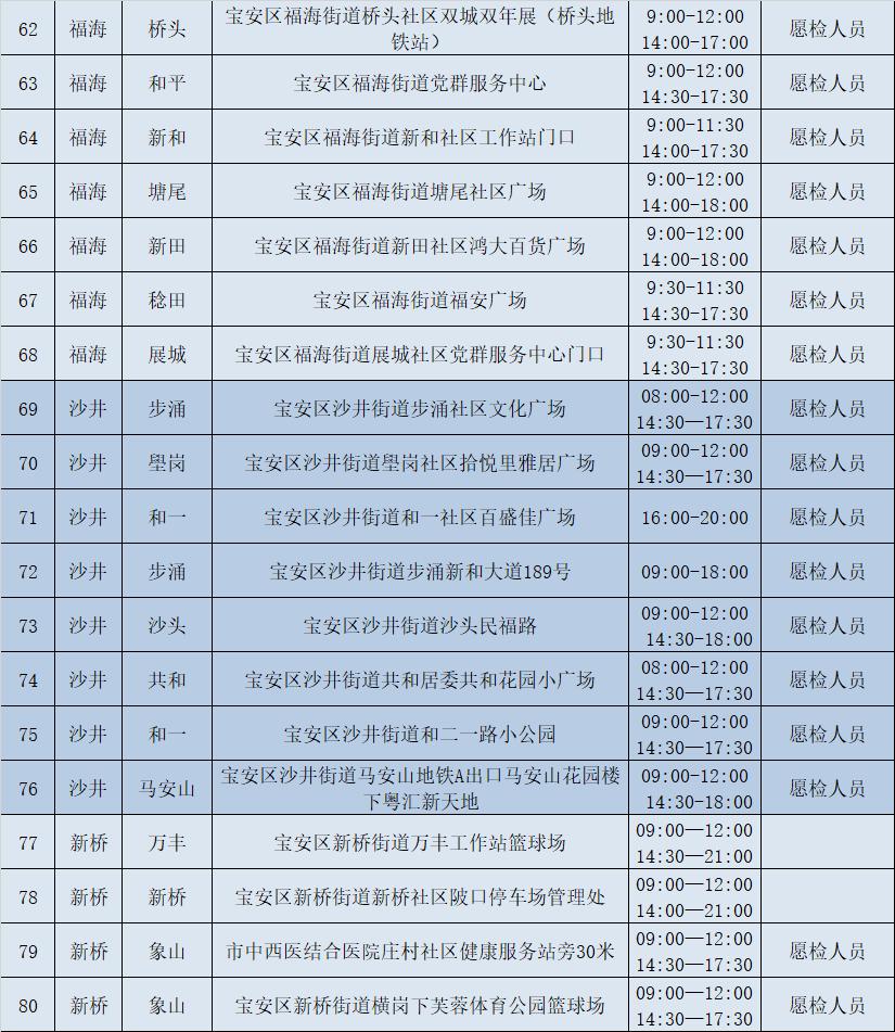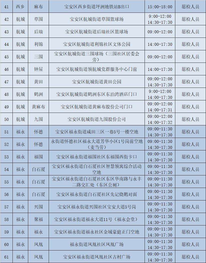 另,石岩街道执行特殊疫情防护政策,核酸点不在此次公布范围。